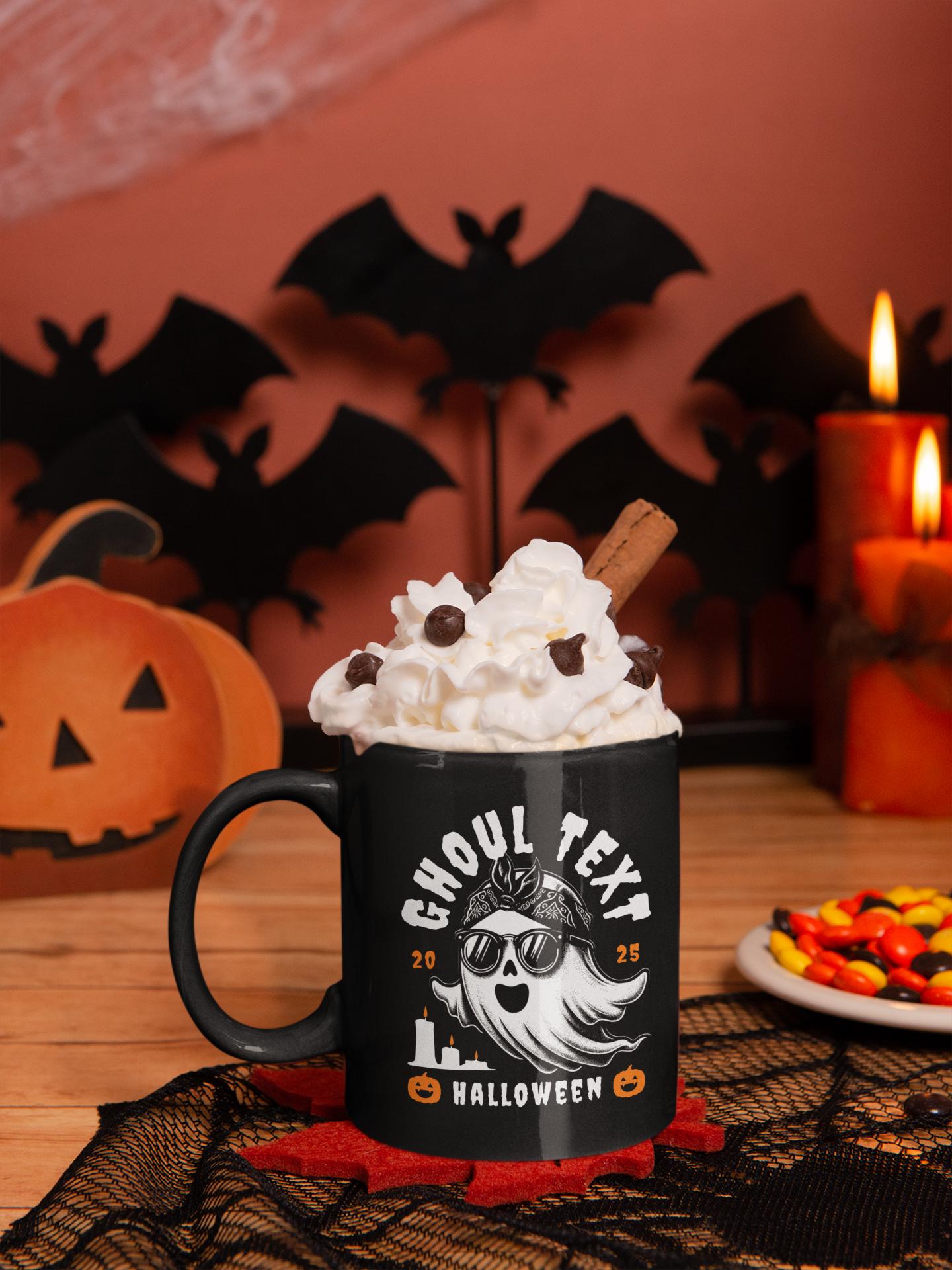 Custom Ghoul Halloween Mug – Personalized “Ghoul [Your Text Here]” Coffee Cup, Funny Halloween Gift for Women, Retro Spooky Mug 2025