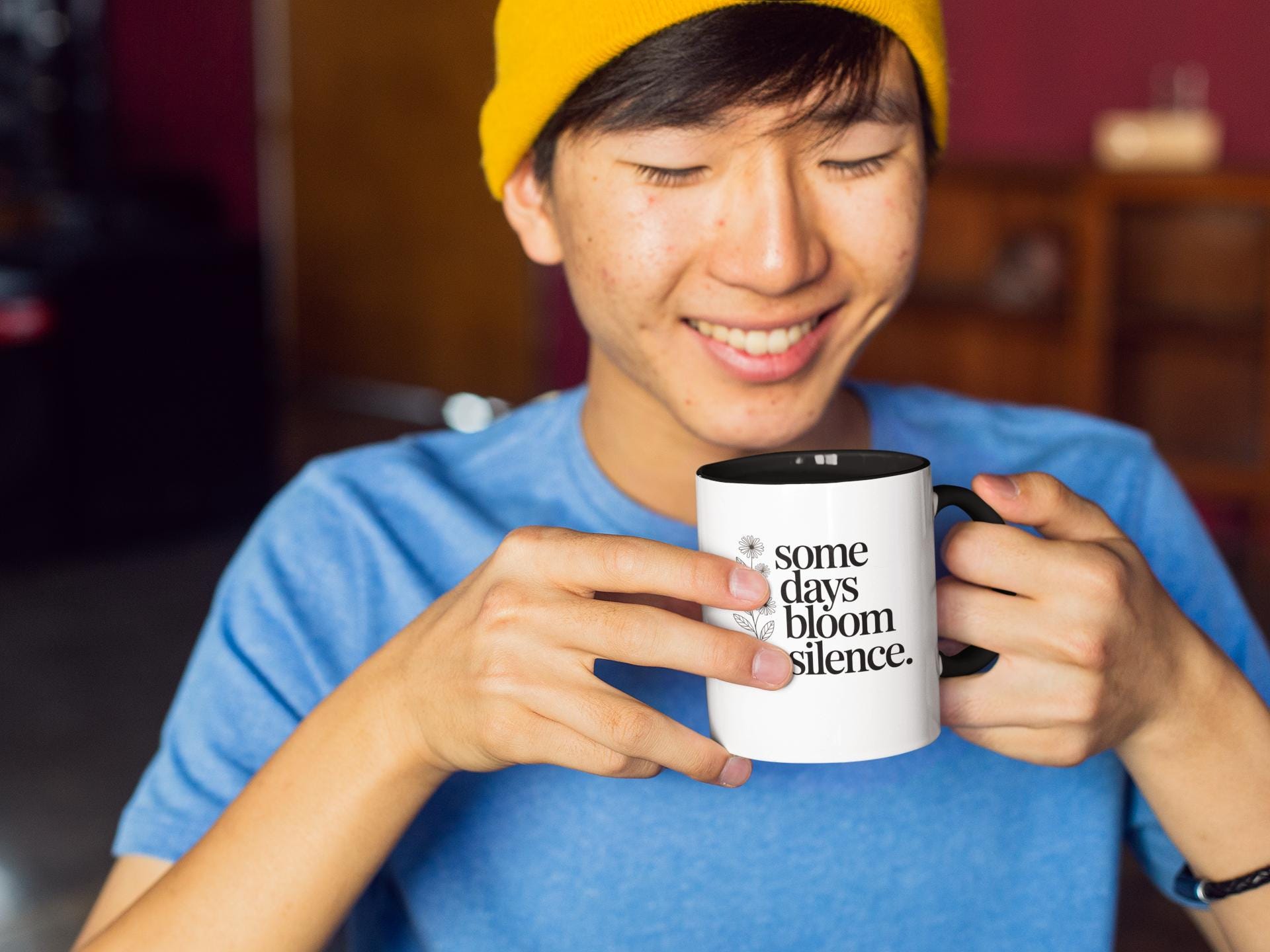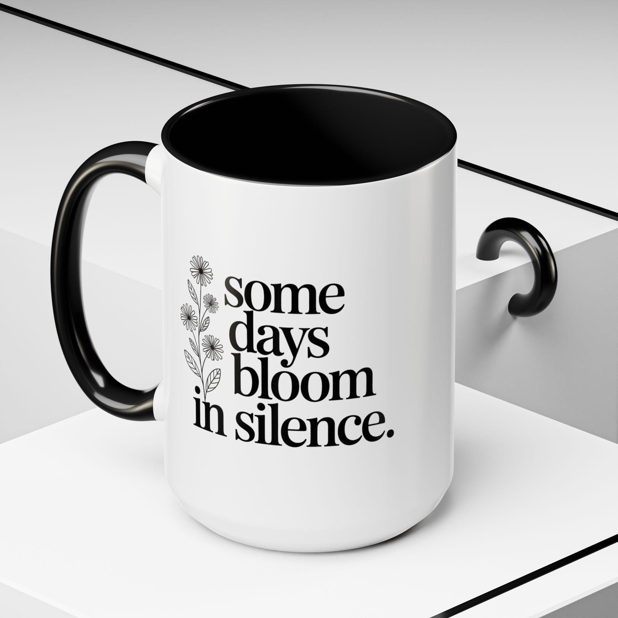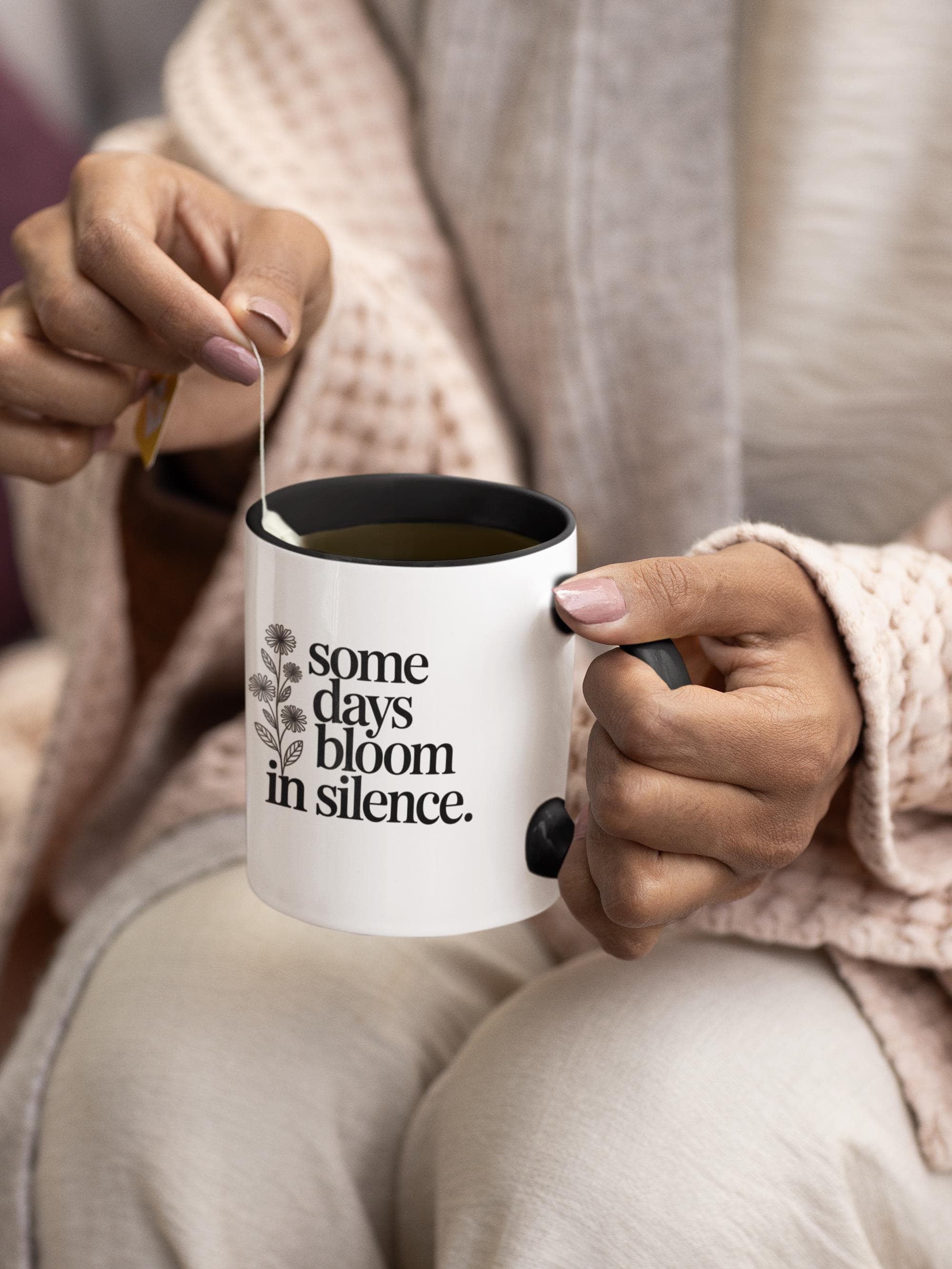 Some Days Bloom in Silence – Minimalist Floral Quote Mug | Poetic Typography Mug | Calm Aesthetic Gift from The Quiet Collection