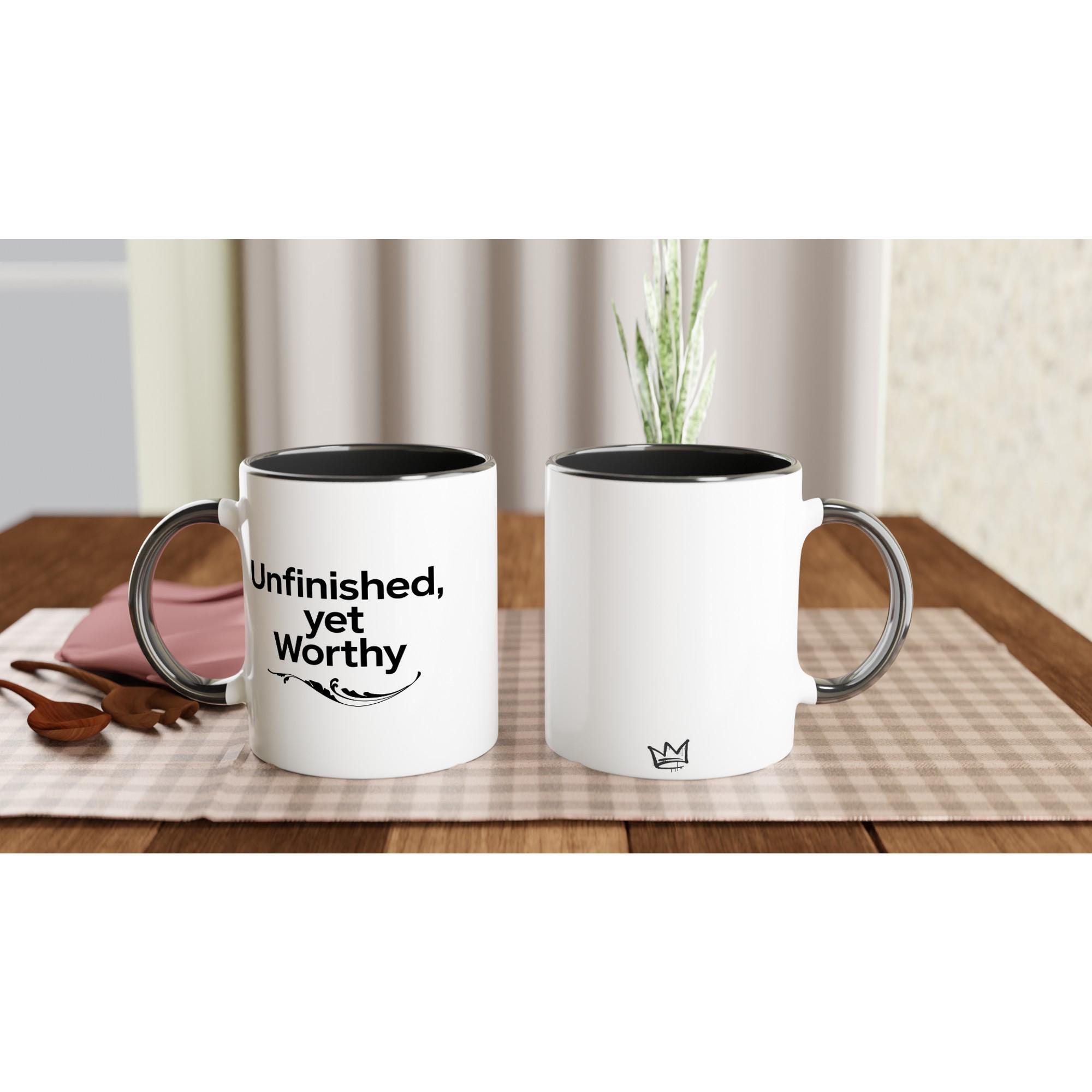 Unfinished Yet Worthy – Minimalist Self Love Mug | Inspirational Quote Mug | Modern Black & White Coffee Cup from The Quiet Collection