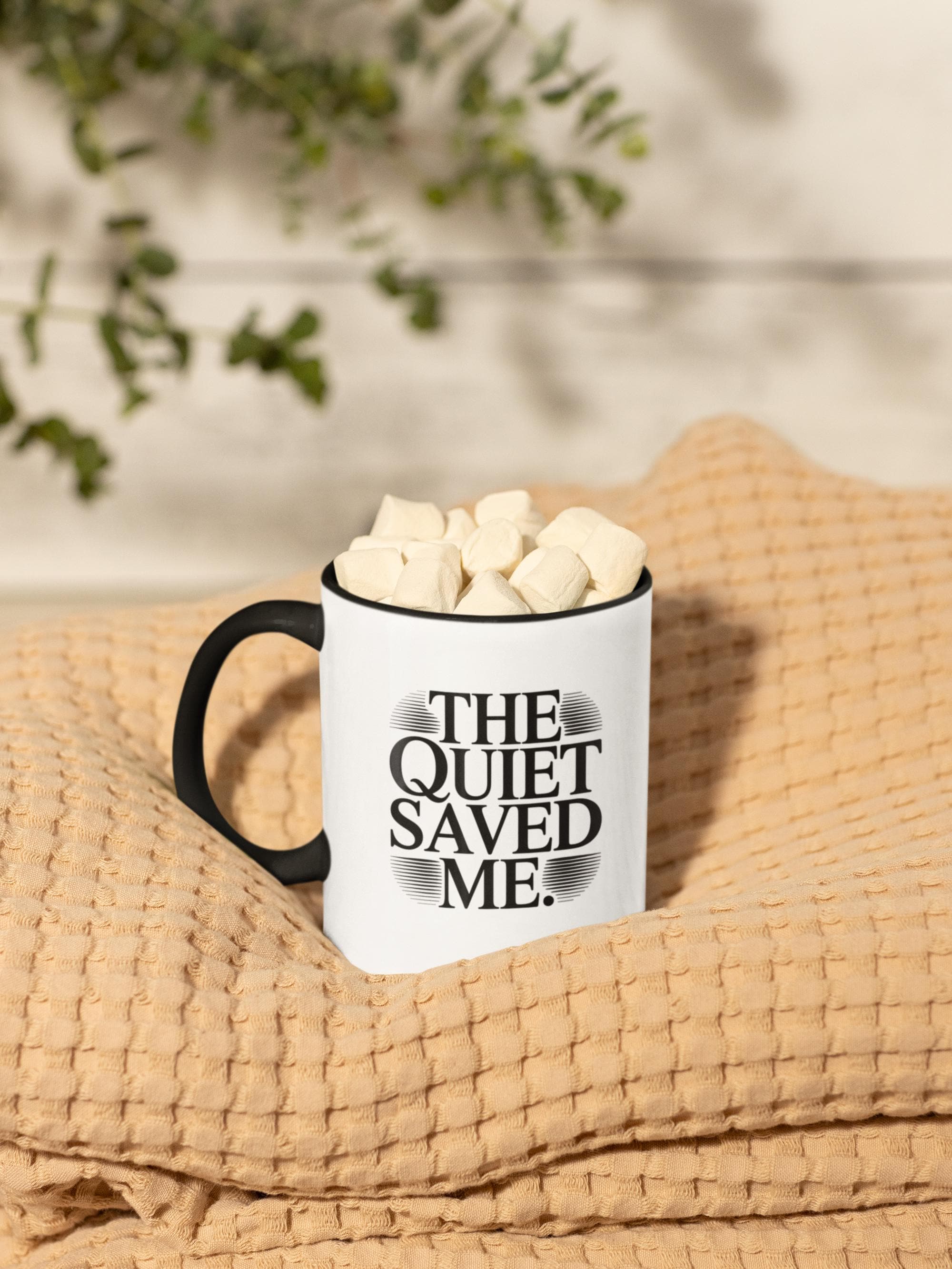 ☕ The Quiet Saved Me – Minimalist Inspirational Mug