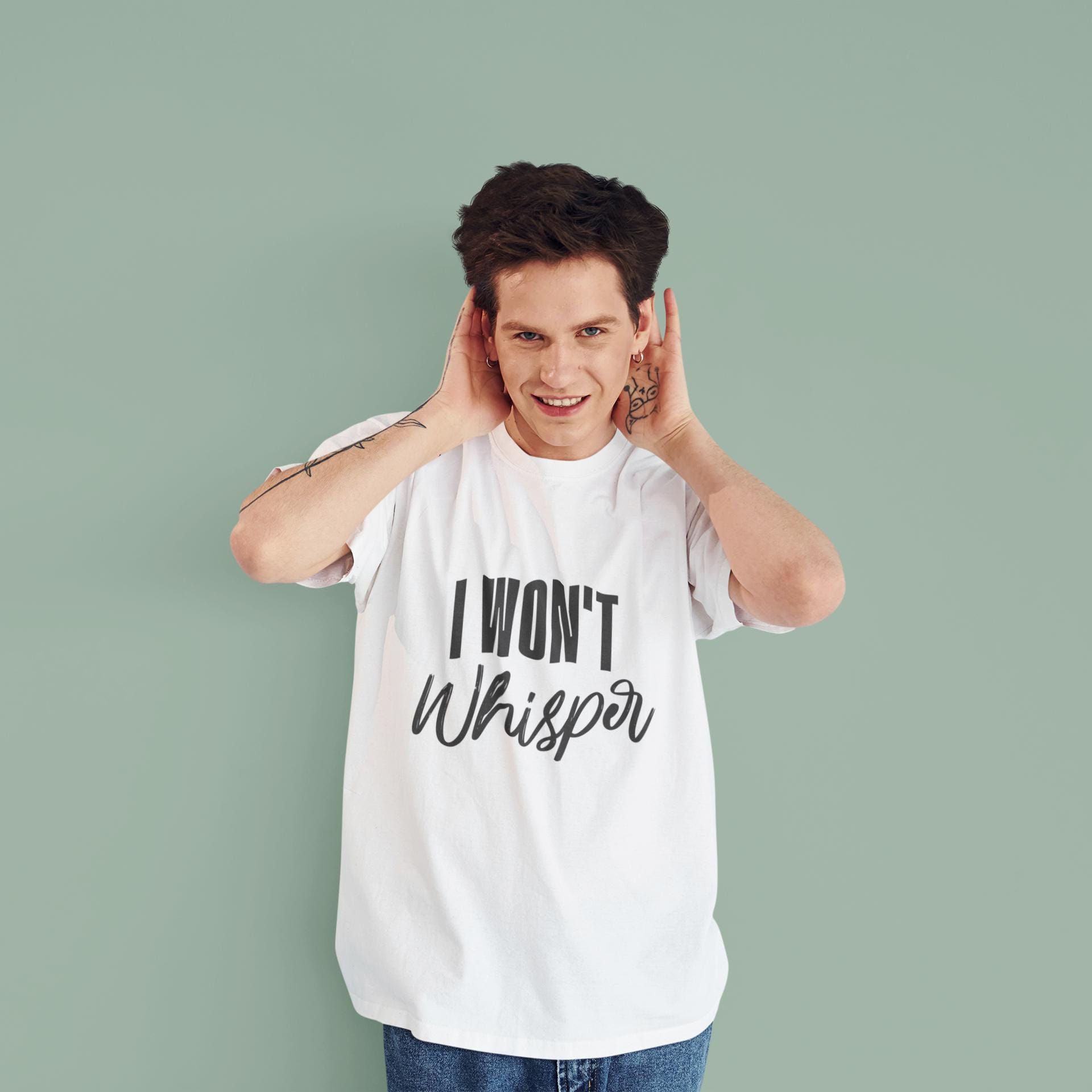 Our “I WON’T Whisper” T-shirt is designed for those who refuse to stay silent — a bold, minimalist tee for creators, activists, artists, and anyone ready to speak their truth.
