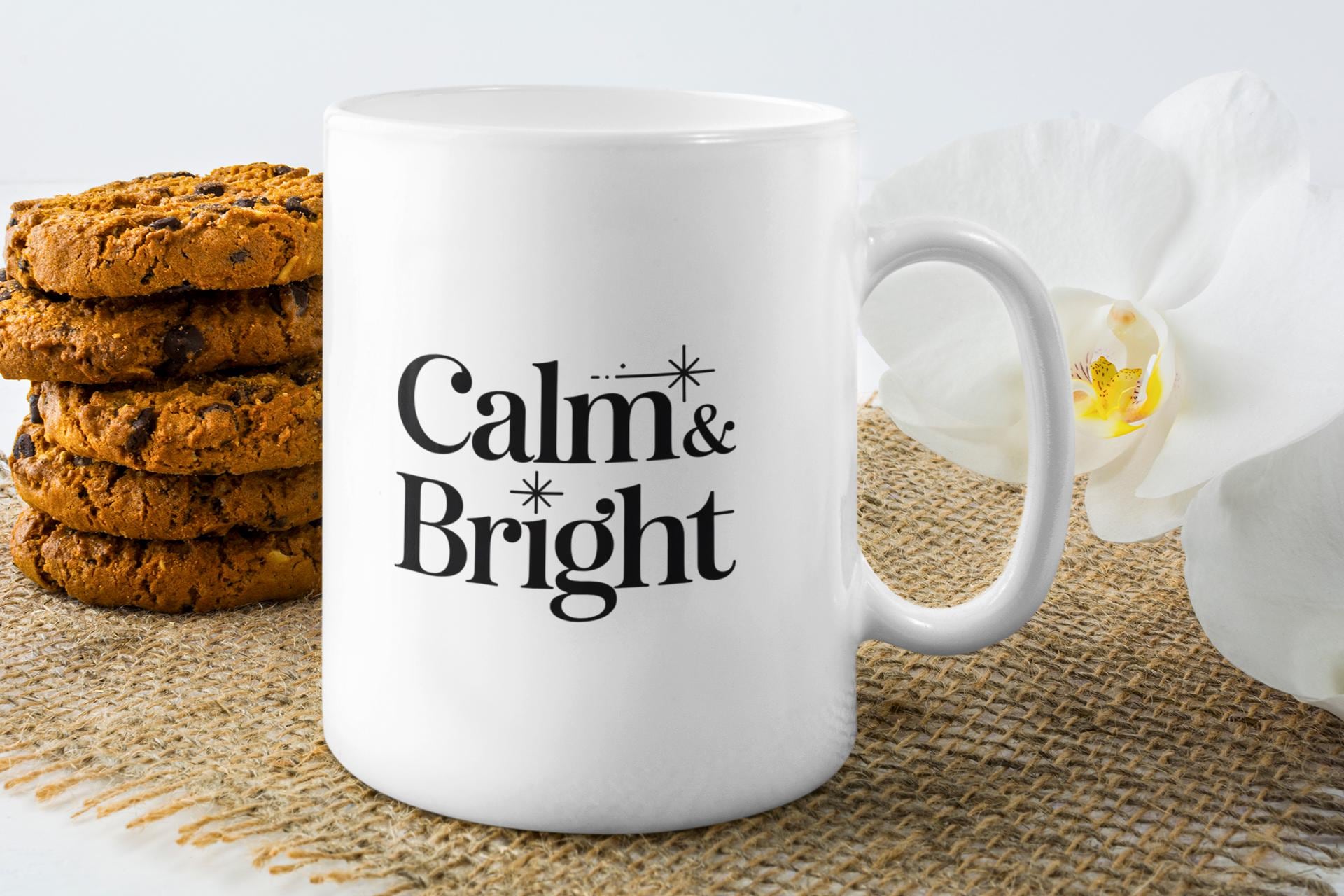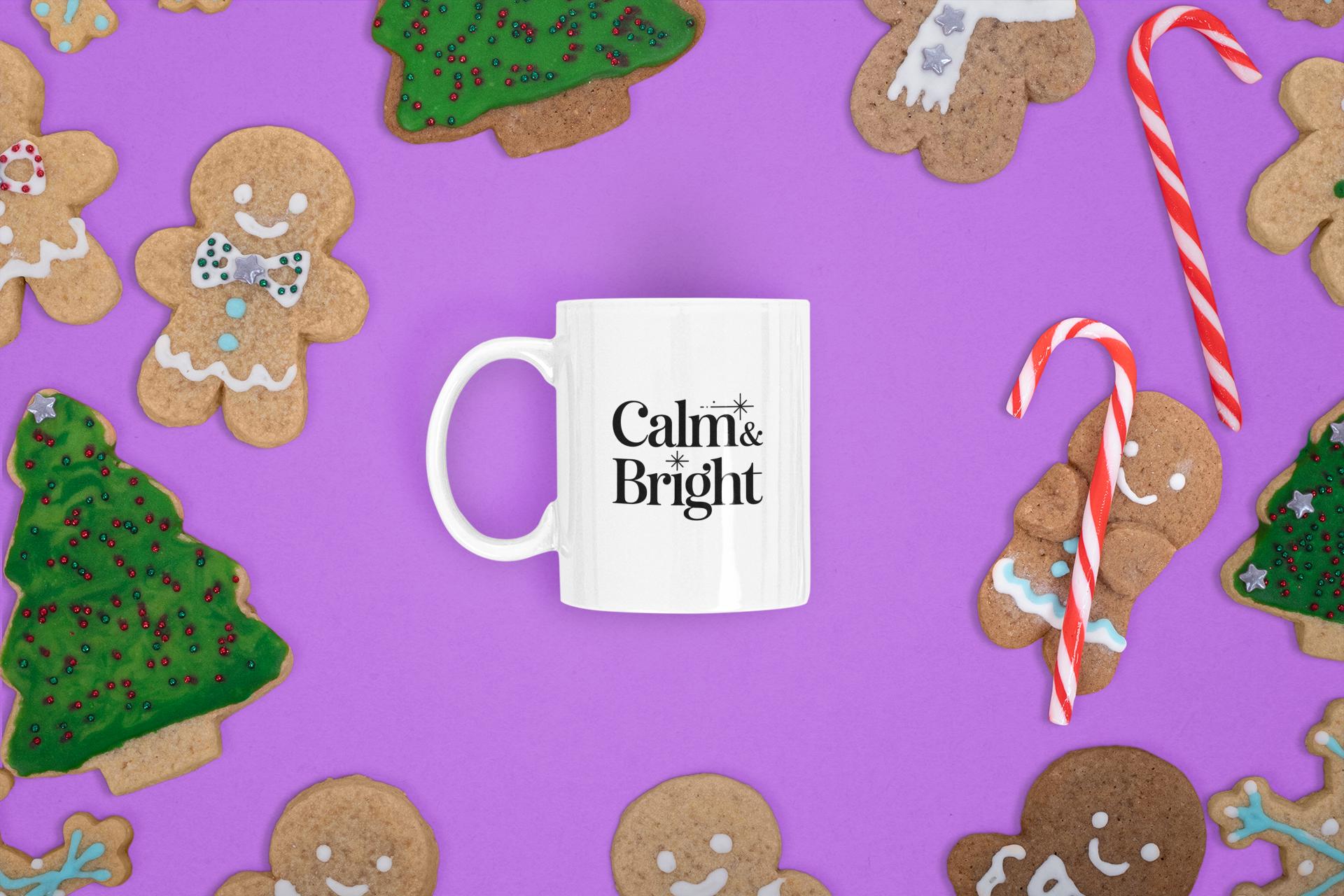 Calm & Bright Christmas Mug – Minimalist Holiday Cup – Scandinavian Style 11oz White Winter Mug