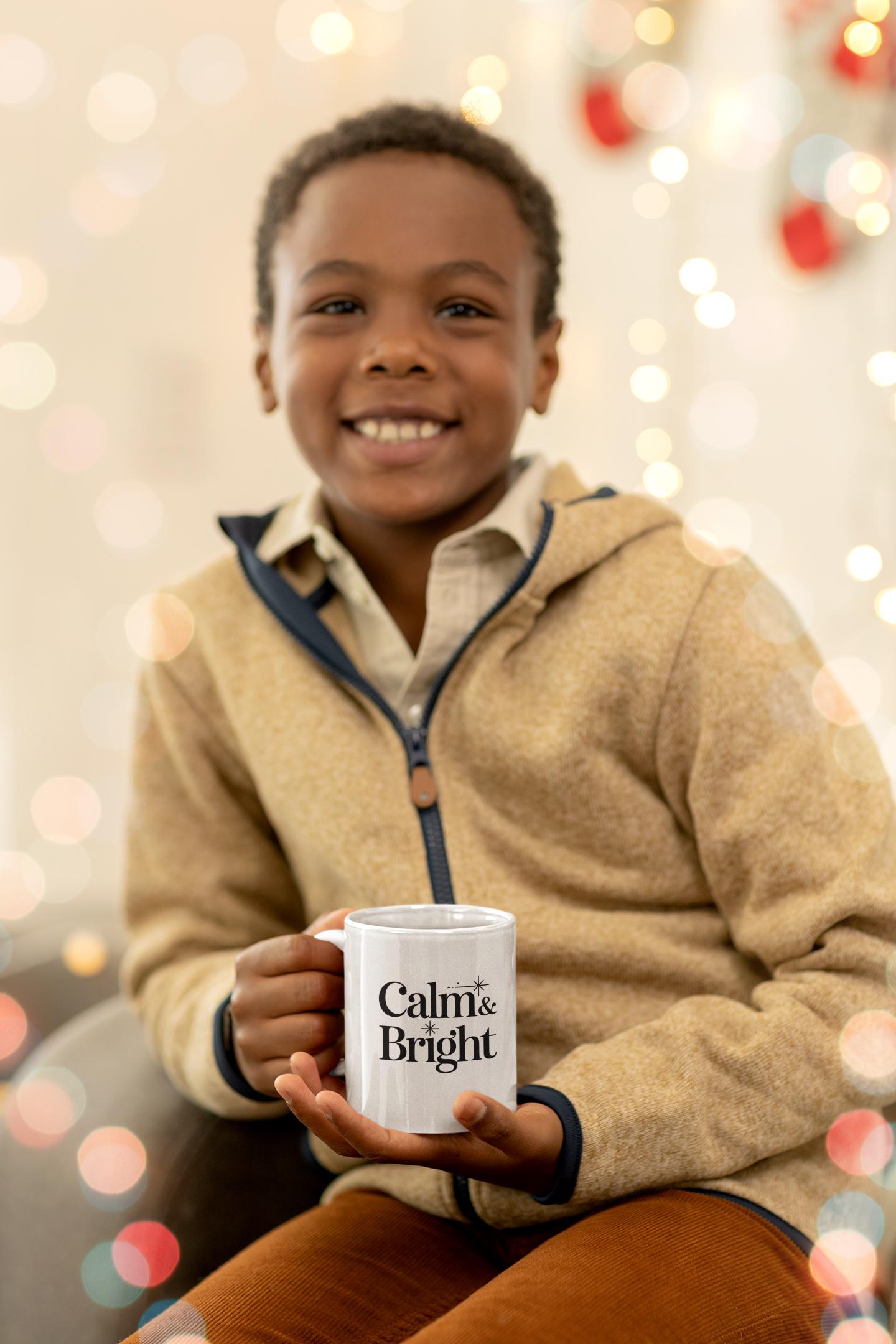 Featuring the serene and elegant “Calm & Bright” design, this white 11oz ceramic cup blends clean typography with a soft festive touch — perfect for cozy December rituals and peaceful winter moments.