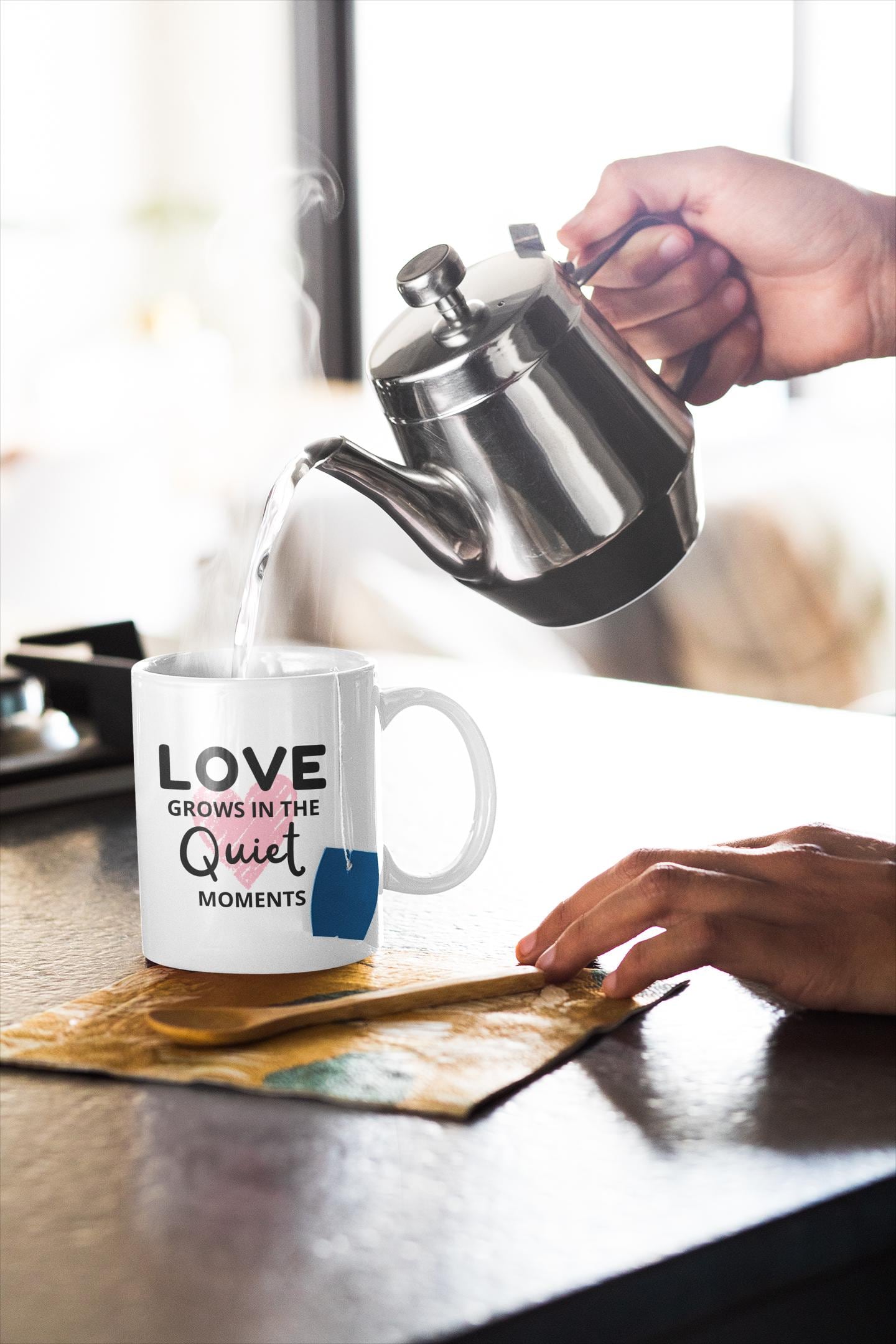 Minimal Romantic Cup - Love Grows Here mug | Ceramic Coffee Cup