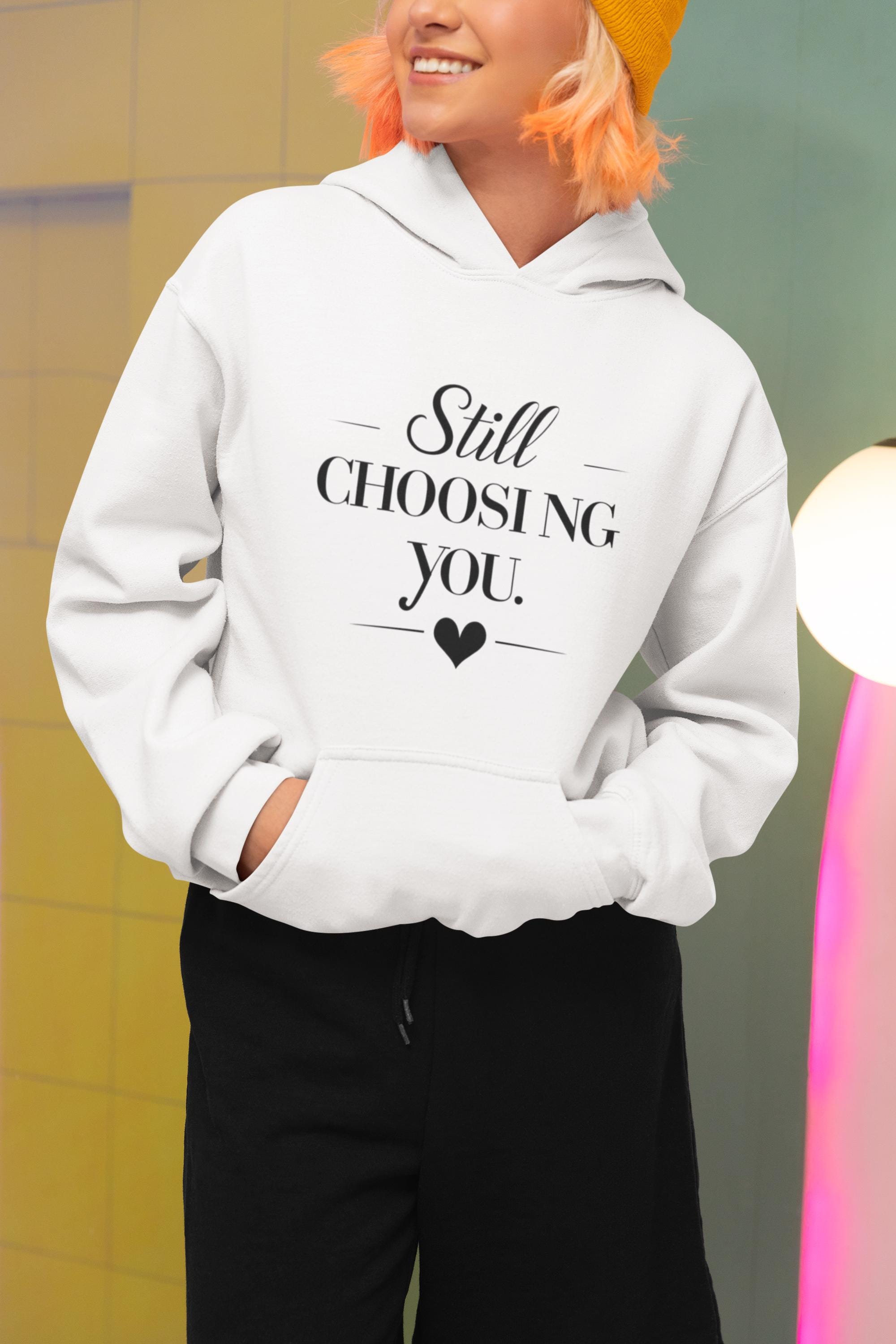Still Choosing You Hoodie – Minimal Couple Sweatshirt, Conscious Love Gift, Unisex White Hoodie