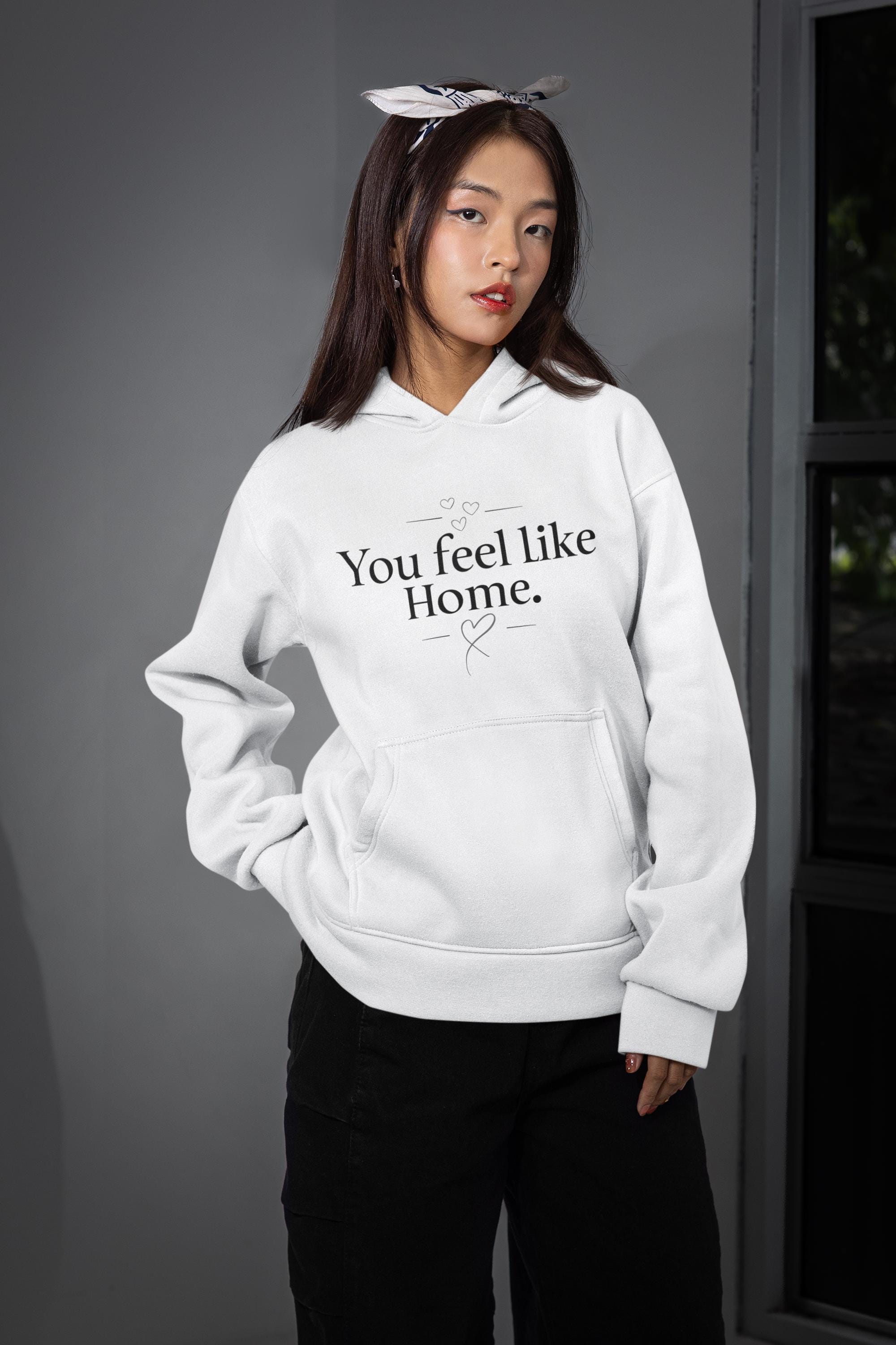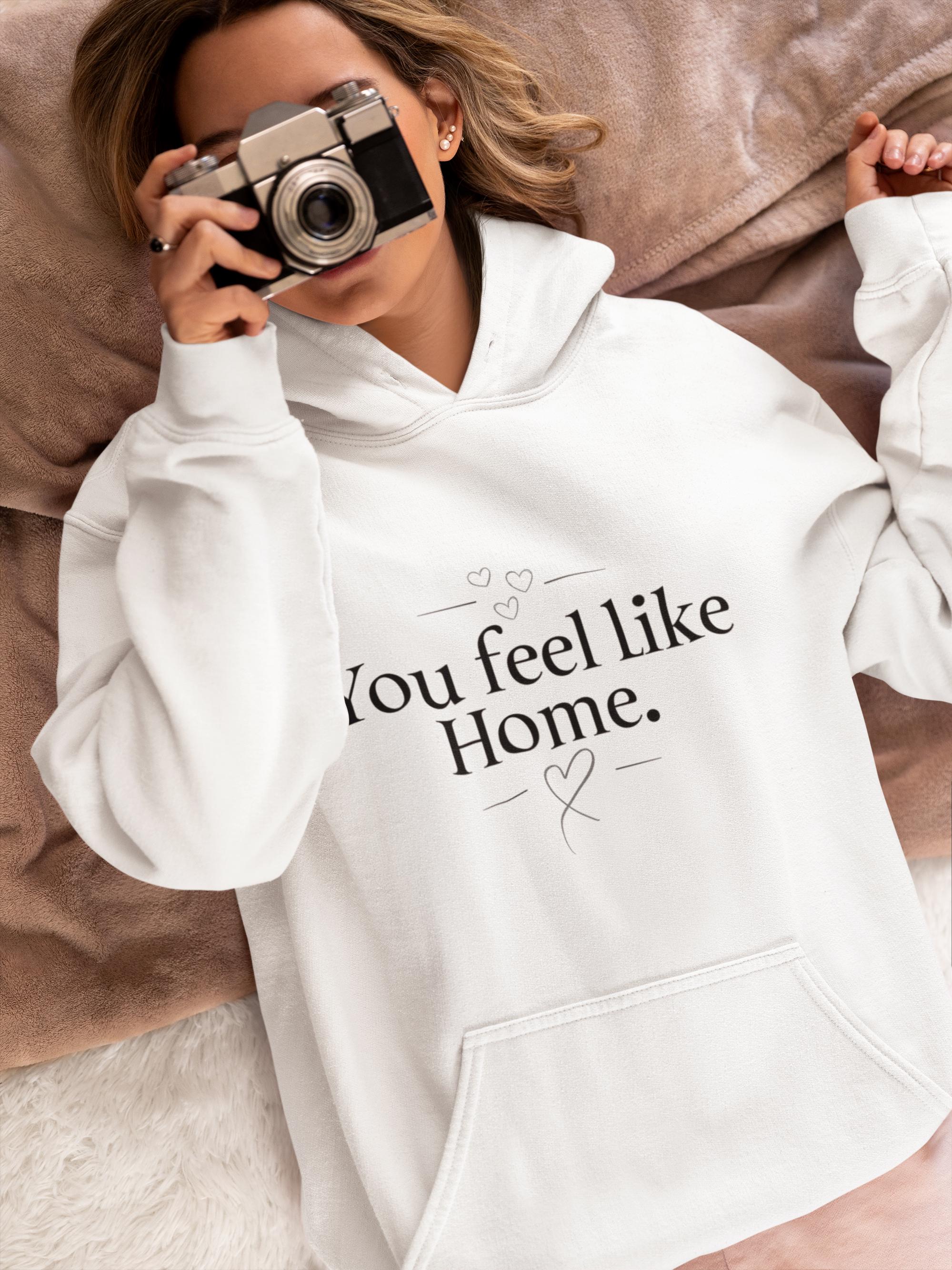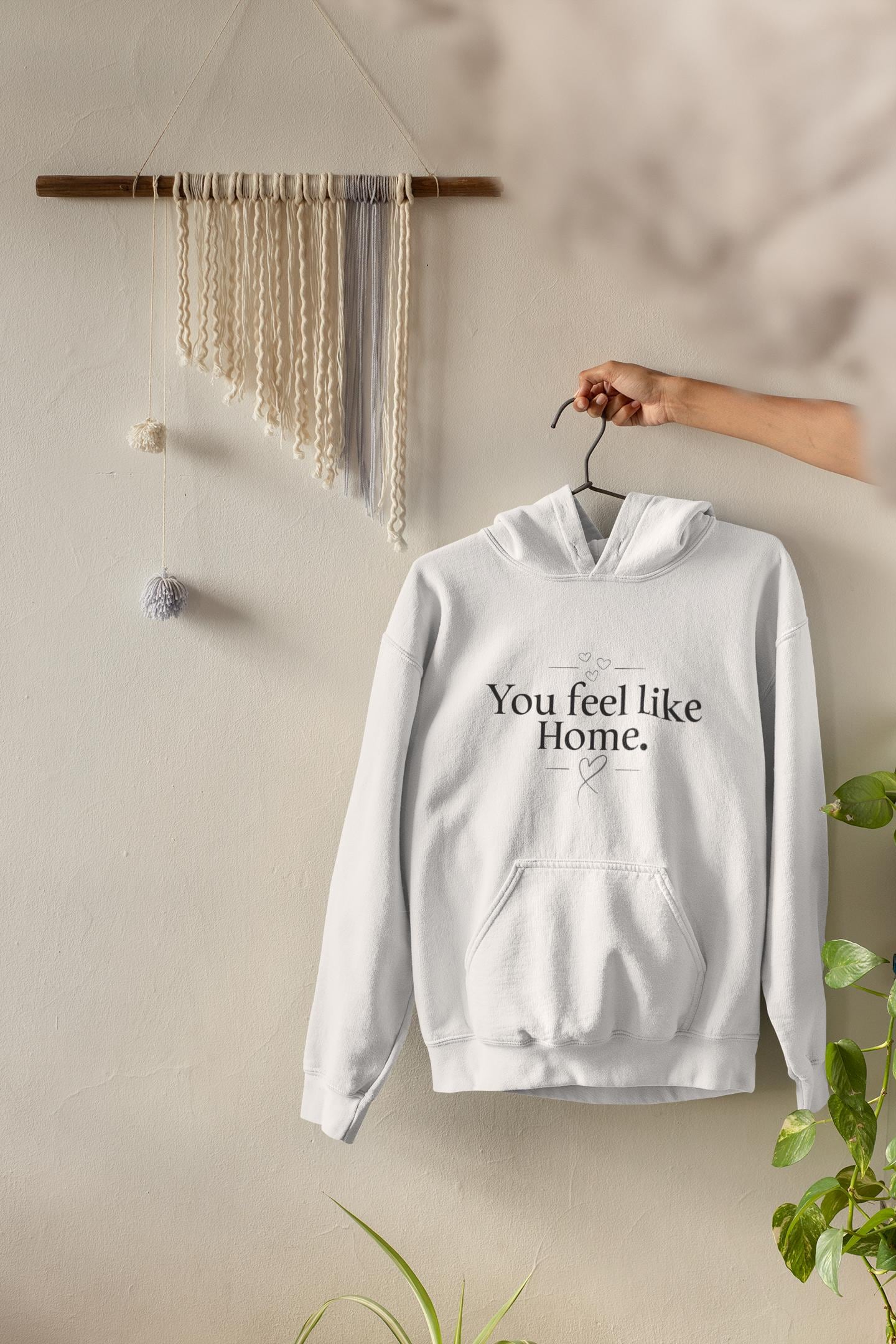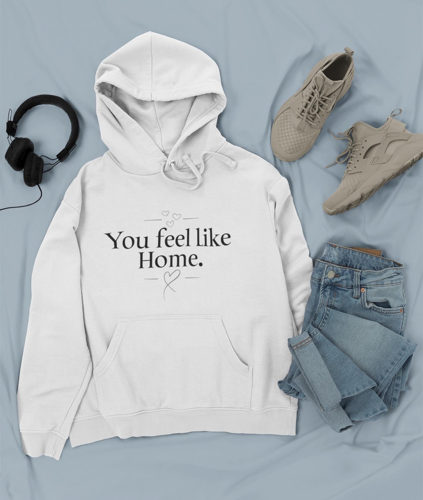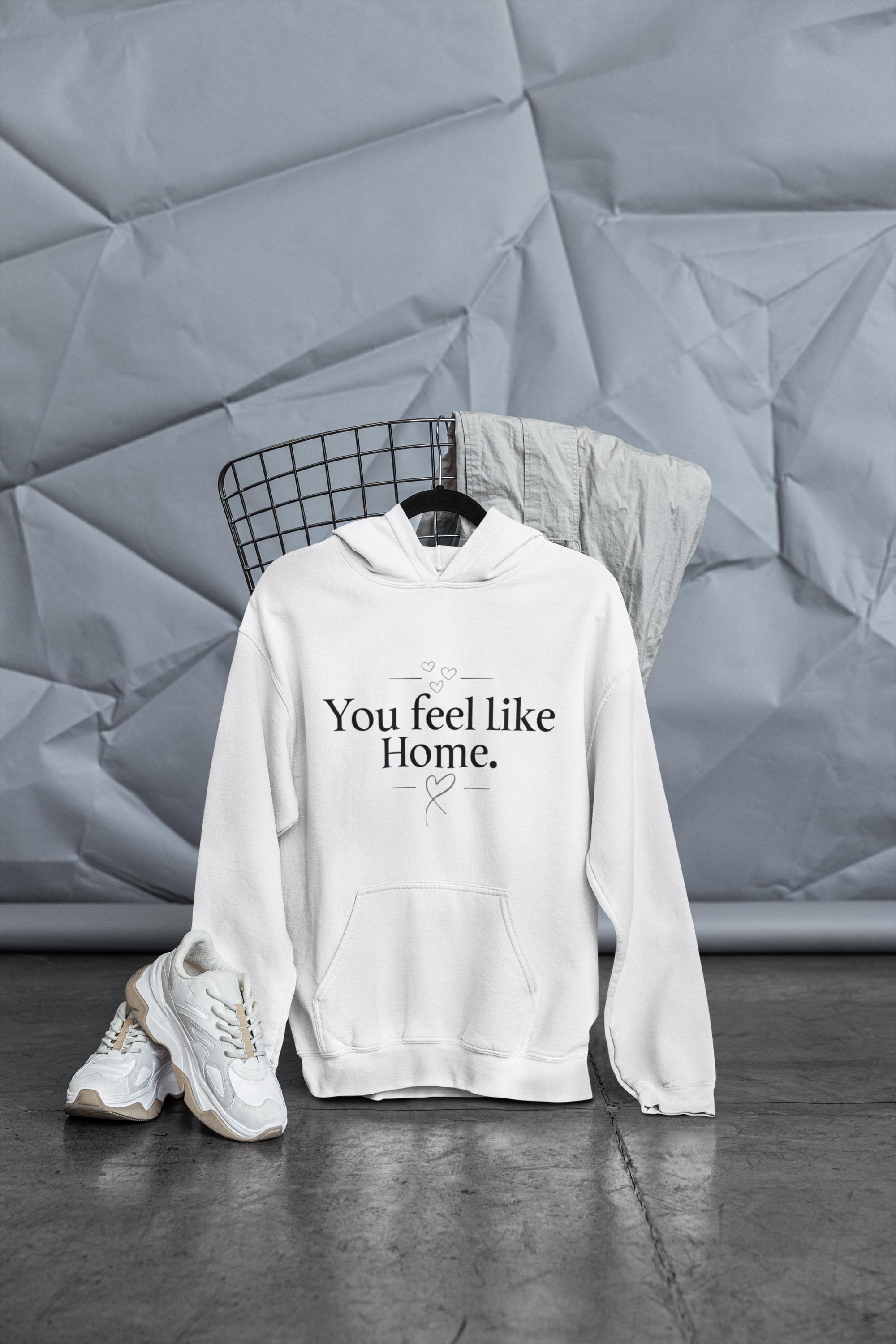 You Feel Like Home Hoodie – Minimalist Emotional Quote Sweatshirt, Aesthetic White Unisex Everyday Hoodie