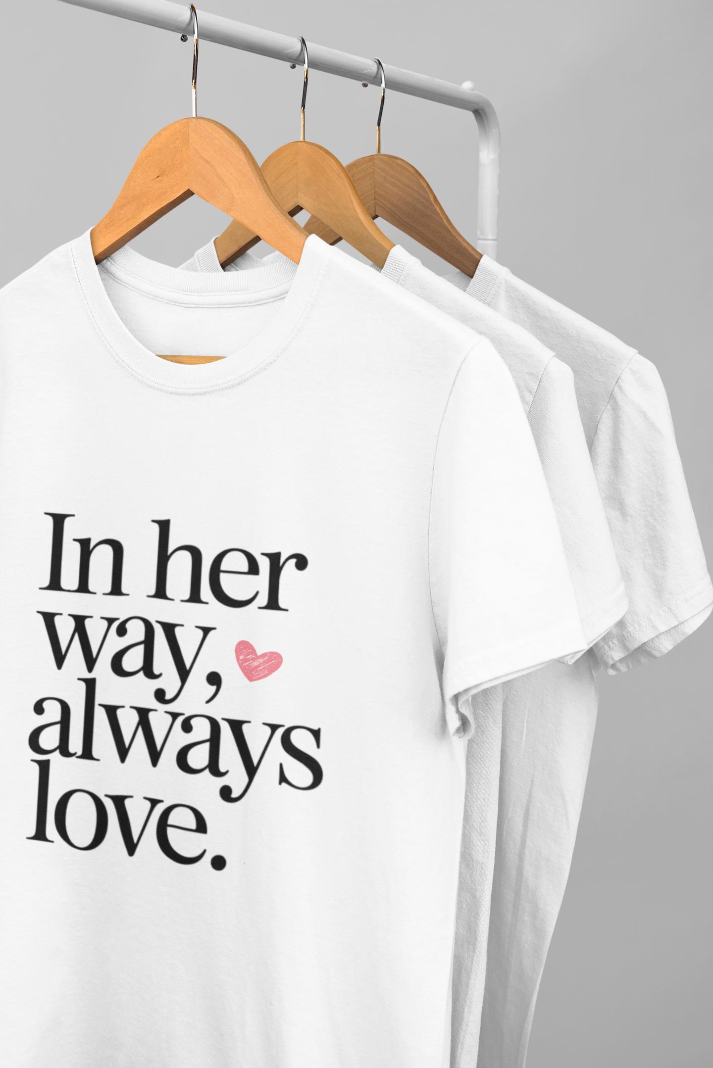 In Her Way, Always Love T-Shirt | Minimalist Mother's Day Gift | Emotional Quote Tee for Mom | White Aesthetic Shirt