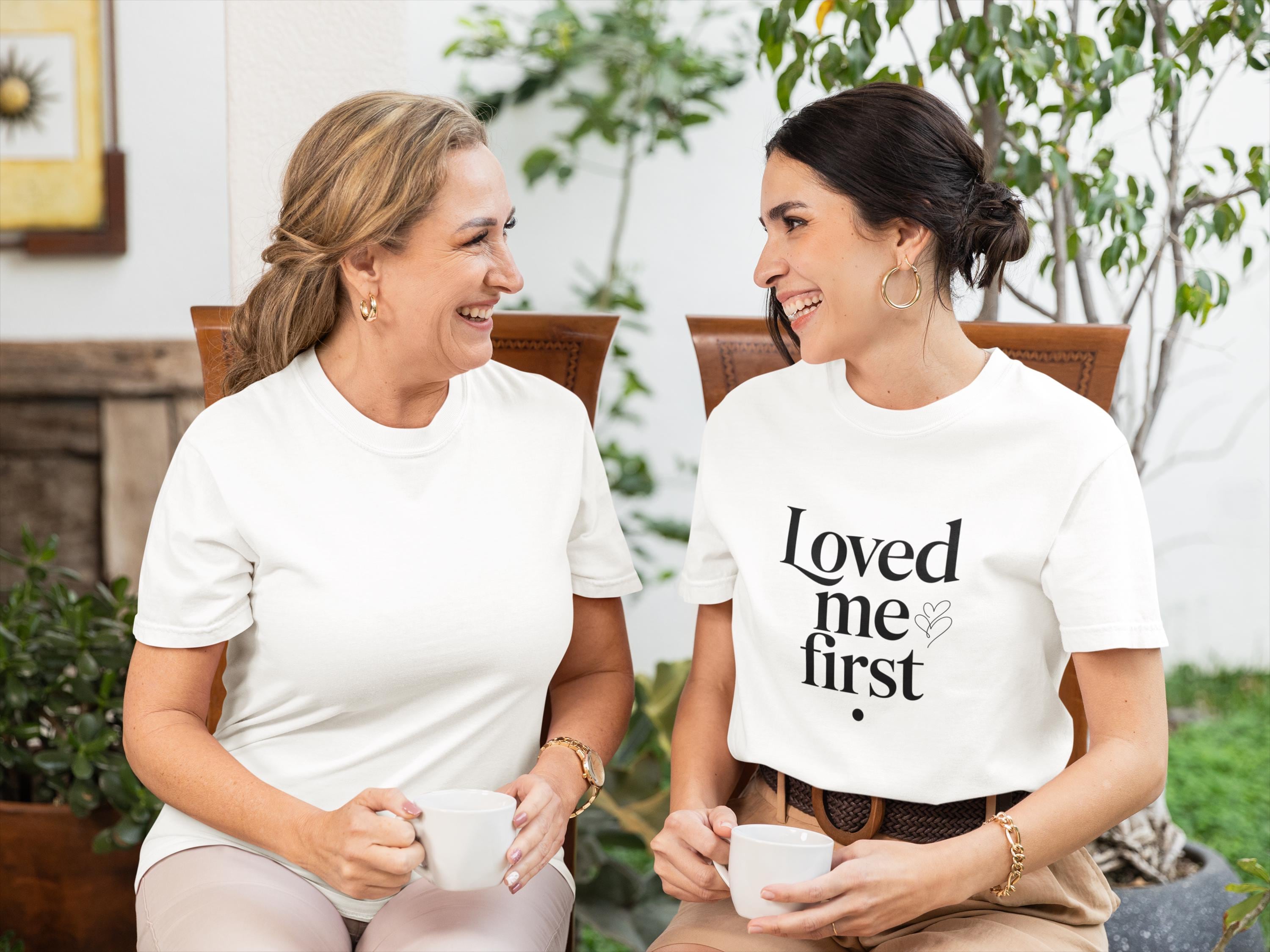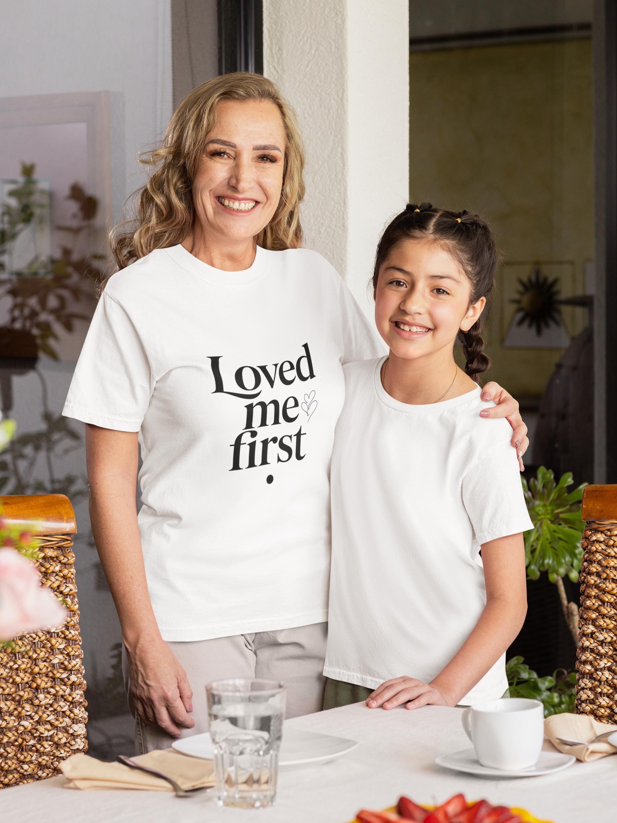 Loved Me First Shirt – Minimalist Mother’s Day Gift, Elegant White T-Shirt for Mom, Modern Typography Tee, Meaningful Gift for Mothers