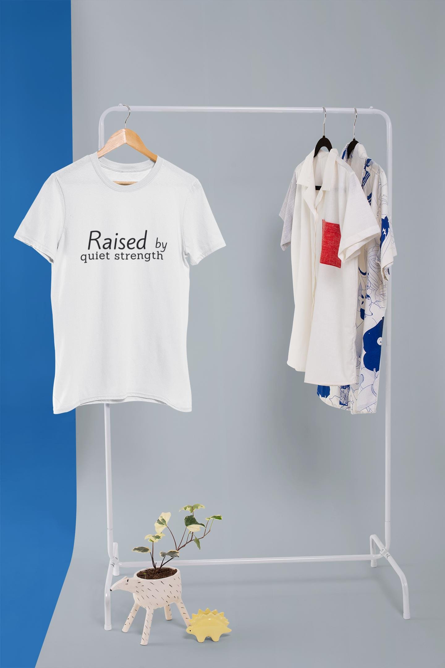 “Raised by quiet strength” is a tribute to the kind of love that doesn’t need to be loud to be powerful. A gentle, minimalist design that honors the calm, resilient spirit of motherhood.